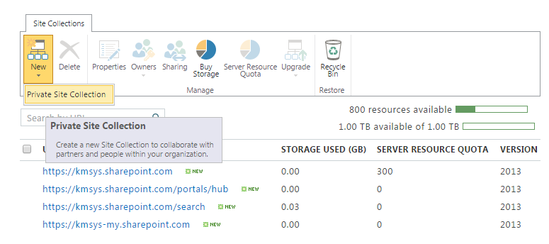 Microsoft gives a sophisticated environment for maintaining all content at one place and make it available online all the time. SharePoint online is part of Office 365 suite. If you have SharePoint subscriptions enabled then you are allowed to create new site collections.