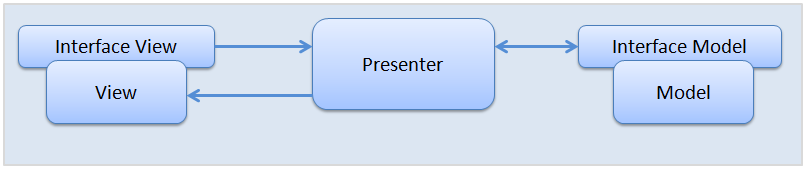 Model: It is a domain level or business object. Model accommodates application data and behaviours to systematically access it. Model should be independent and it should not be communicated directly from either View or Presenter. All the time model will be treated as stand alone build business object which can be interacted through an interface.