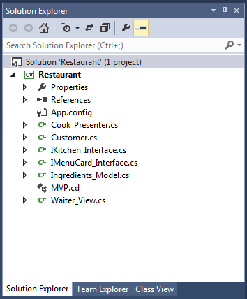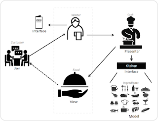 Cook --> Presenter: The one who collect input from waiter and prepare food based on the order and deliver the food back to waiter who will serve to customer.