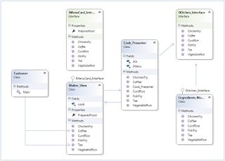 Kitchen Interface --> Model Interface: Kitchen is the place which provide a facility to prepare food by accessing all ingredients and cooking equipments by cook.