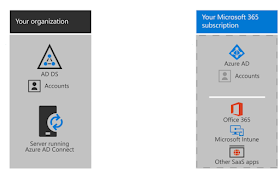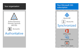 2. Hybrid: User accounts are stored in both on-opem and Azure. Active Directory Domain Services (ADDS) stores the users credentials. It is an authorized source and Azure Active Directory is synched set